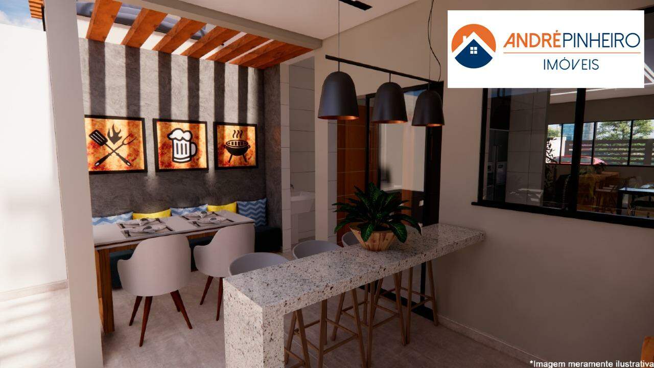 Cozinha americana conjugada com a sala, com bancadas inclusas